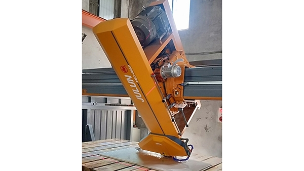 該機采用PLC編程控制系統(tǒng)和人機操作界面,輔以高精度旋轉編碼器定位及紅外線標線器,左右走刀采用變頻器控制,可根據(jù)石材材質進行調速,上下升降采用液壓升降,關鍵部位均采用進口零配件,主機頭可傾斜50度,使用范圍更廣,因而具有切割效率高、切割精度高、穩(wěn)定性高、操作簡便等優(yōu)點,特別適用于高價值大規(guī)格花崗巖、大理石和異形石材制品的切割。