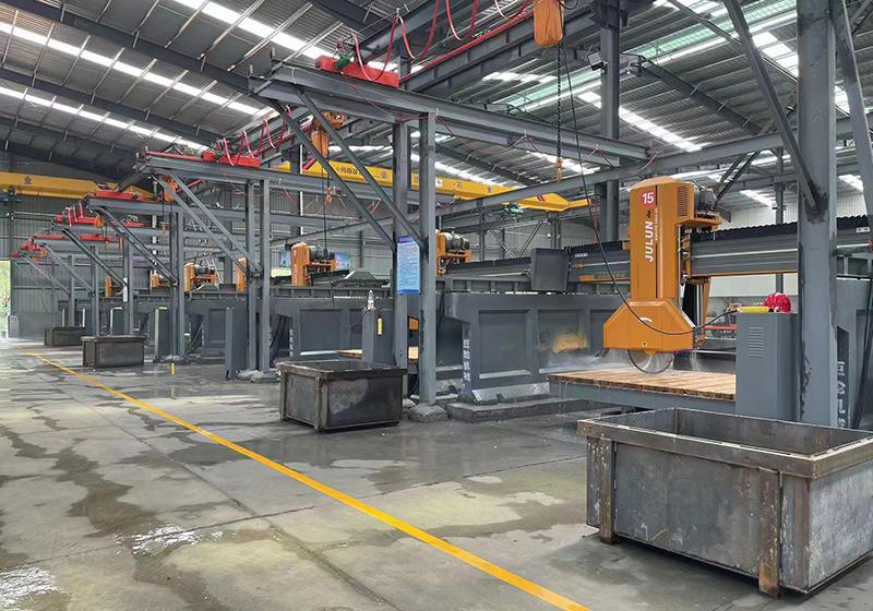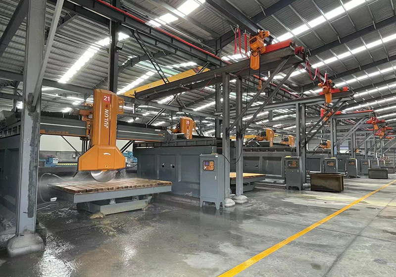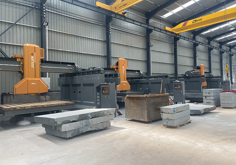 該機(jī)采用PLC可編程控制系統(tǒng)和人機(jī)操作界面,輔以高精度旋轉(zhuǎn)編碼器定位及紅外線標(biāo)線器,左右行走及前后分片采用雙變頻器控制,可根據(jù)石材材質(zhì)進(jìn)行調(diào)速,上下升降采用液壓升降,結(jié)合鍍鉻導(dǎo)柱+耐磨導(dǎo)套,配合間隙小,耐磨美觀,并在導(dǎo)套內(nèi)設(shè)計(jì)多層密封,防水防塵防漏油,提高使用壽命。工作臺(tái)采用超重型大規(guī)格型材焊接而成,承載重量更大,更穩(wěn)固耐用。關(guān)鍵部位均采用進(jìn)口零部件,因而具有切割效率高、穩(wěn)定性高、操作簡(jiǎn)便等優(yōu)點(diǎn),特別適用于異形、墓碑、路沿石的切割。