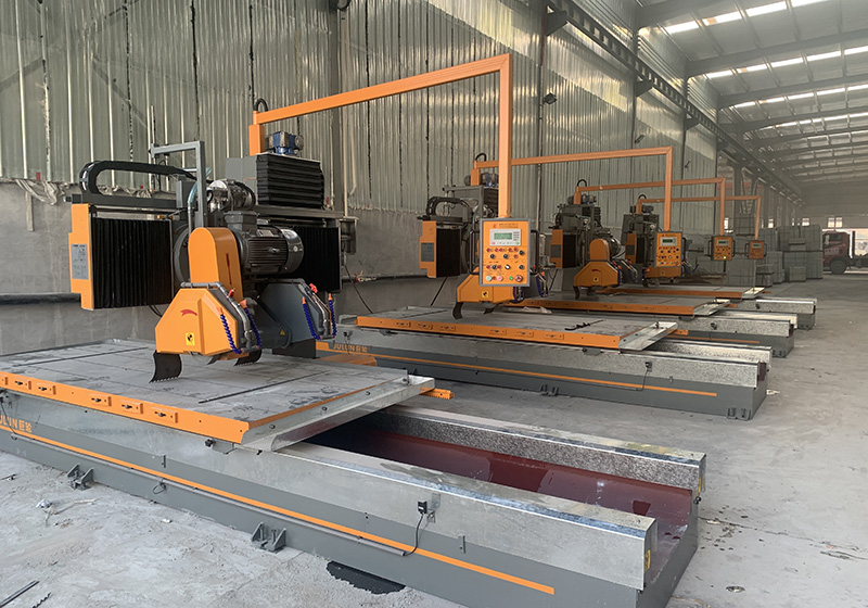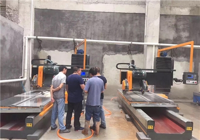 該機通過光釬探頭自動跟蹤曲(直)線模型的樣板,用金剛石圓鋸片自動仿形切割成曲(直)線形狀的石線等石材工藝制品,上下升降及左右走刀均采用變頻調速,可根據石材材質進行調節(jié),如選配旋轉工作臺,還可實現圓弧形線條的加工,整機采用PLC可編程控制,自動化程度高、切割精度高;采用雙刀設計,切割效率高、穩(wěn)定性好、操作簡便,特別適用于線條、圓弧形線條、羅馬柱、大圓弧板等異形石材的加工。