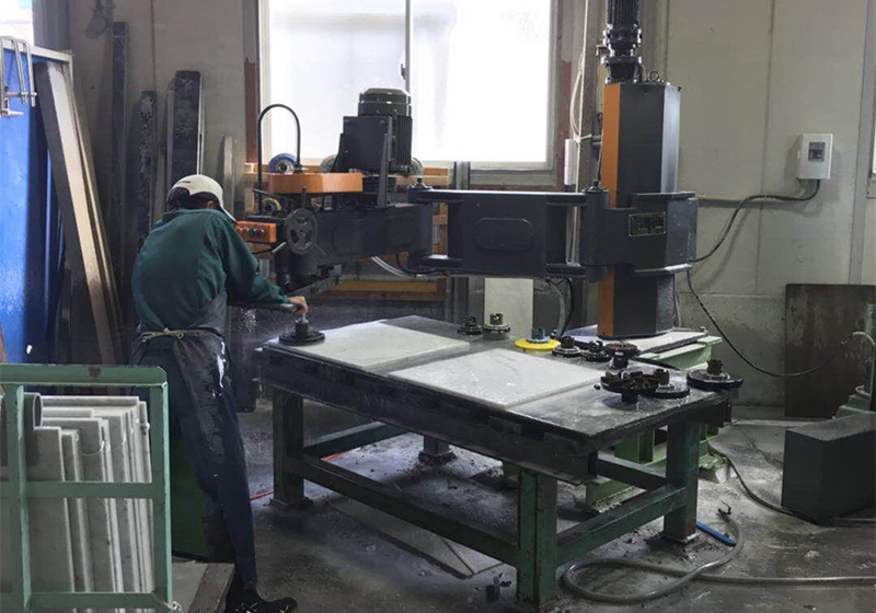 該機采用圓柱作為升降導滑面,自動升降平穩(wěn),主機分單雙速兩種。適用于厚度頻繁變換的板材、墓碑石、拼花石等平面磨拋。